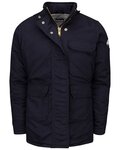 • Two-way, separating, heavy-duty Nomex®, taped brass zipper, fully covered with insulated storm flap, concealed snap closure
