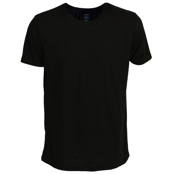 3.6 oz., 65% polyester/35% combed ring-spun USA cotton Heat-set to minimize shrinkage Side-seamed construction Ribbed crew neck Taped neck and shoulders to provide durability Double needle stitching on sleeves and bottom hem Tear Anywhere label USMCA certified