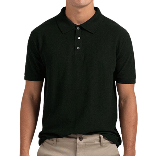 6.7 oz., 50% cotton/50% polyester Pique textured knit Contoured welt collar and cuffs Double needle bottom hem Three buttons Banded sleeves Tubular construction Tear Anywhere label USMCA certified