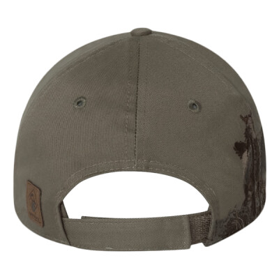 100% brushed cotton twill; Structured front; Pre-curved visor; Hook and Loop backstrap; Detailed embroidered wildlife scene on right side; Dri Duck embossed leather patch left of back vent;