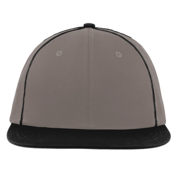 * 100% cotton * Mid-profile * Pro-model * Structured crown * Full crown * Flat round bill * Gray undervisor * Full crown eyelets * X-piping with contrast colors on some colorways * Snapback adjustable