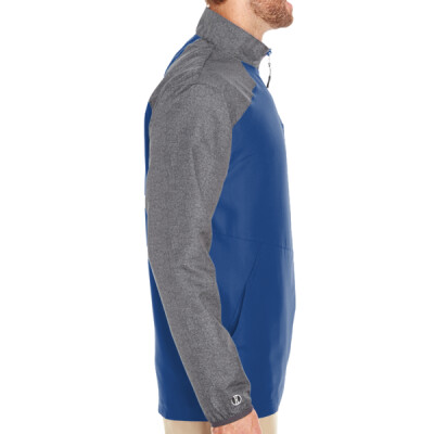 Ultra-lightweight Aero-Tec(tm) fabric provides both weather protection and zero noise, without the bulk * Raider print pattern detail on sleeve with pocket and media port * Woven label * Quarter zip pullover style * Sleeve pocket with silver media port with silicone welded zipper * Set-in sleeves * Divided front pouch pocket * Spandex bound cuff * Open bottom * Weather protection (Durable Water Repellent)
