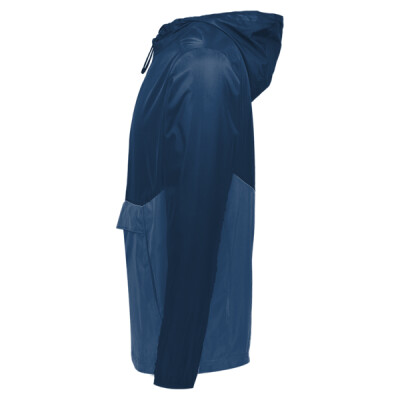 * 100% polyester MicroTec soft micro denier fabric with PU coating for water-resistance * Woven label * Half-zip pullover style * Set-in sleeves * Jacket folds up into zippered front pocket * Spandex bound cuff