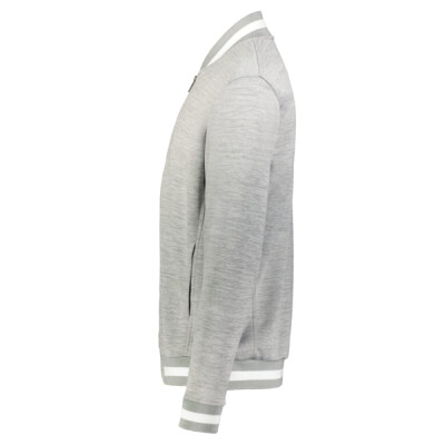 * 100% polyester double-knit * Woven label * Front zipper * Set-in sleeves * Front pockets * Dual inside pockets * Striped rib-knit collar, cuffs and bottom band
