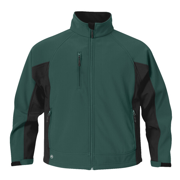Look your sporting best in this two-tone bonded sport softshell with a microfleece backing for luxurious comfort and smooth mobility. The design includes an interior storm placket and chest pocket, while the water repellent finish effectively keeps the wet out.