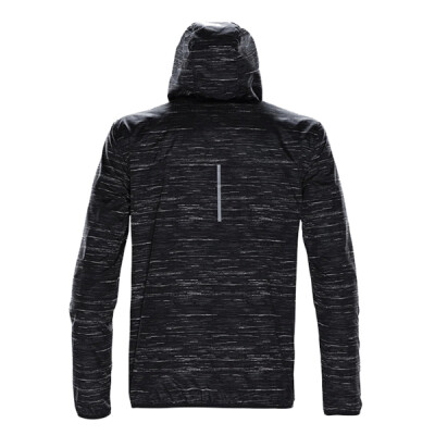 The perfect partner for evening runs in low light, with a fashion-forward heathered design. This lightweight shell features an elasticized hood, cuffs and hem and reflective tape detail for added visibility.