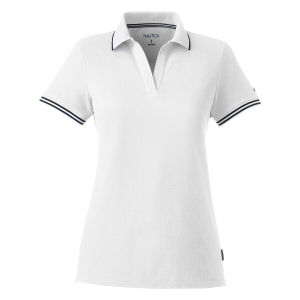 60% cotton, 40% polyester; Split neck ribbed collar with contrast striped tipping; Striped neck tape; Short-sleeve with ribbed trim; Side slit hem; J-Class logo on left sleeve; Classic Nautica flag label at left side seam;