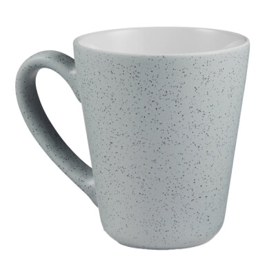 • Mug with angular body and flecked gray exterior