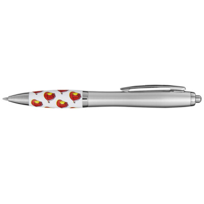 • Retractable curvy plastic barrel ballpoint pen with stock art grip featuring our Fireman Emoticon
