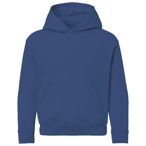* 8.0 ounce, 50% cotton/50% polyester * NuBlend(r) pill-resistant fleece * Woven label * Two-ply hood * Set-in sleeves * Front pouch pocket * Rib-knit cuffs and bottom band * No drawstring in youth size
