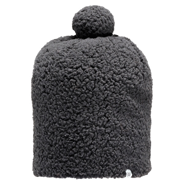 100% polyester Sherpa; Double-sided Sherpa; Sherpa pom; Stylish, slouchy fit; One size fits most;