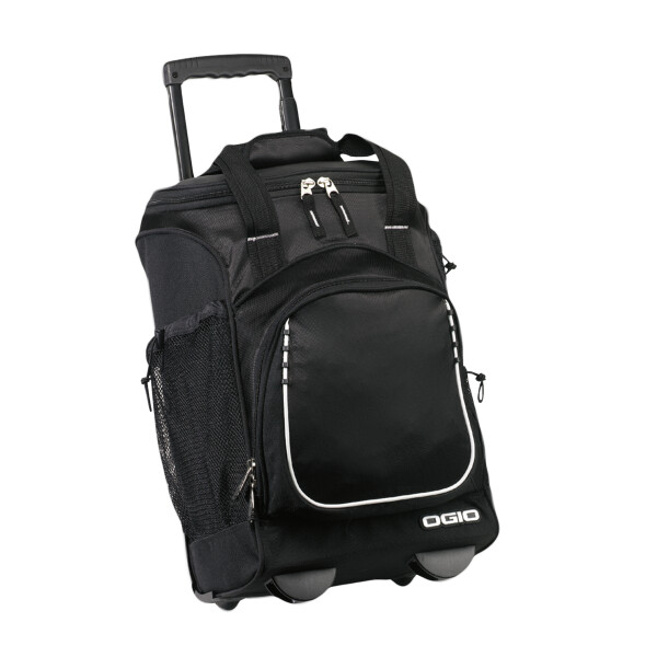 Party-sized cooler rolls with ease on sturdy wheels and an adjustable-height handle.