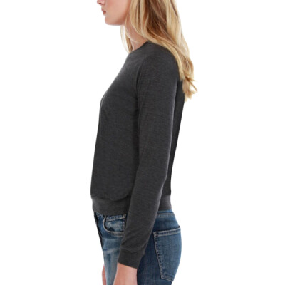 4.3 oz., 52% cotton 48% polyester; 30 singles; Ultra-Fine Cotton Blend; Fashion fit; Side seams; Raglan sleeves; Lightweight sweater look; Ribbed cuff and bottom hem; Tear-away label; Made in a W.R.A.P. certified factory;